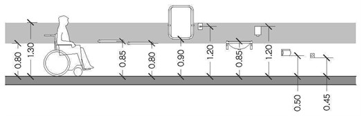 Se encuentran exceptuados de la presente autorización las obras en construcción localizadas sobre la vereda derecha de acuerdo al sentido de circulación, de los tramos de arterias sujetos a un régimen de carriles exclusivos, vías preferenciales o con prohibición de estacionamiento vigente las 24 horas, donde la colocación de caballetes debe realizarse sobre la vereda, debiéndose garantizar un ancho mínimo de 1,50 m para la transitabilidad de personas con discapacidad.