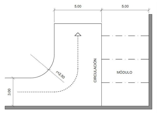En los supuestos de obras en construcción localizadas sobre la vereda derecha conforme el sentido de circulación de los tramos de arterias sujetos a un régimen de carriles exclusivos, vías preferenciales o con prohibición de estacionamiento vigente las 24 horas, la colocación del contenedor debe realizarse sobre la vereda, de acuerdo a la factibilidad de operación del camión transportador, conforme el cableado existente y la ubicación del vallado protector. De ser necesario, el cableado debe ser correctamente levantado. La colocación del contenedor sobre vereda debe garantizar el paso mínimo de circulación peatonal para personas con discapacidad de 1,50 m.